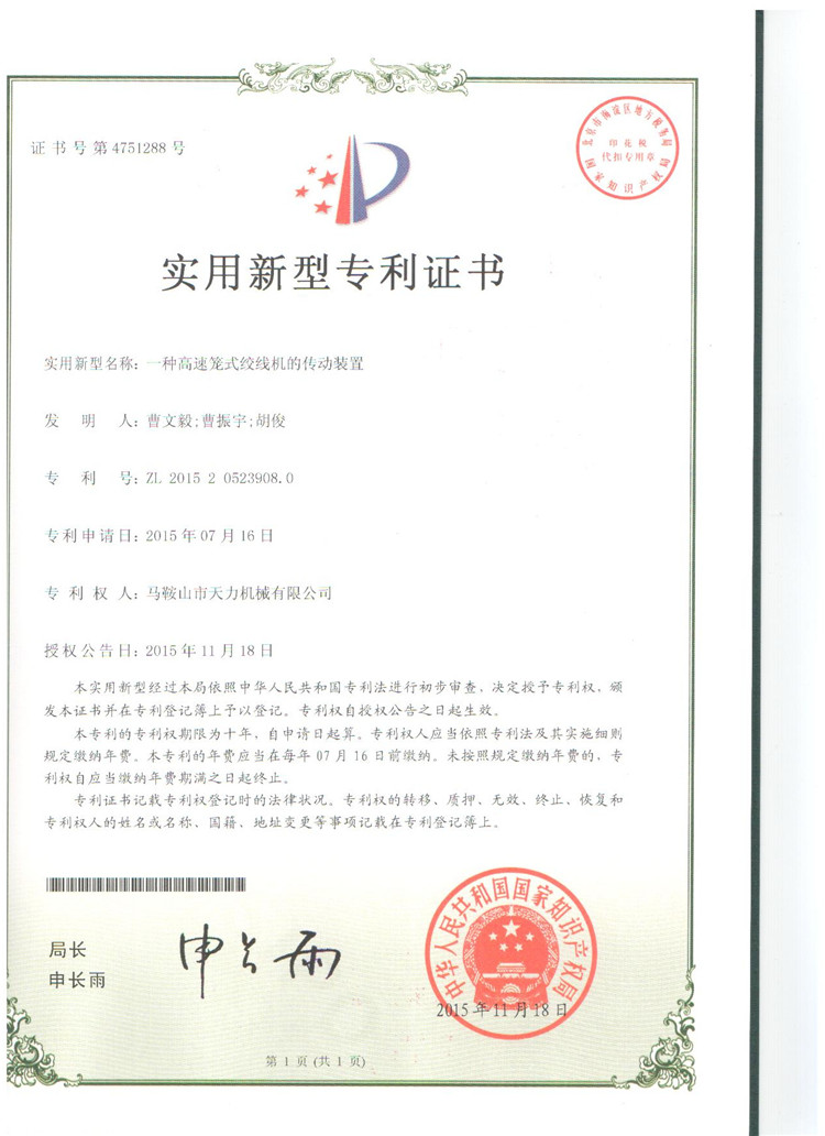 上一篇:2016年實用新型專利證書